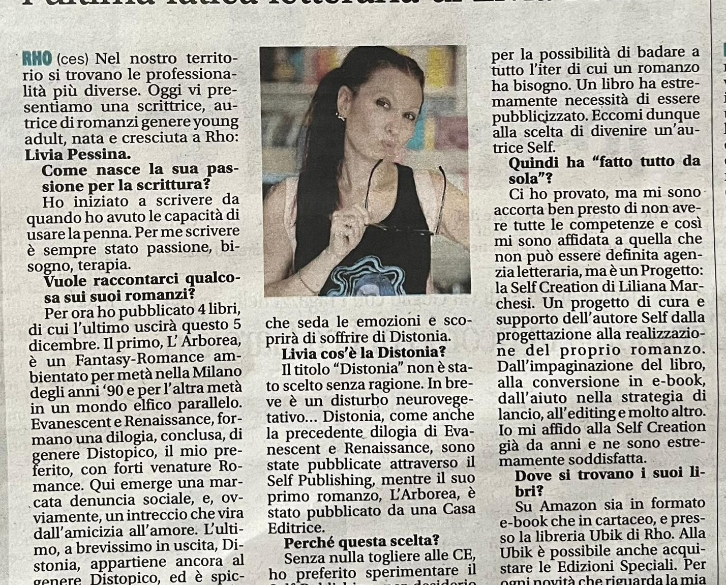Con un piccolo refuso nella seconda colonna, dove mi sono imbattuta in un SUO invece di MIO, sono comunque molto soddisfatta per questo articolo e grata alla redazione di Settegiorni. Spero che il mio quarto libro, Distonia, ne tragga giovamento, quasi fosse un barbarico Yawwwp che urlato sui tetti del mondo dica: IN BOCCA AL LUPO, LIVIAAAA! E io risponderei con un altrettanto barbarico e viscerale VIVA SEMPRE IL LUPO! E così sia o, spero, sarà...